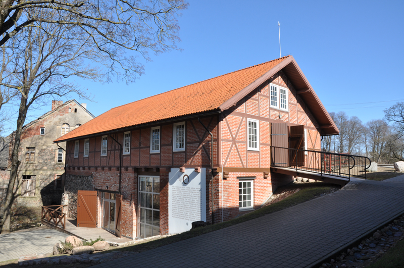 Kretingos dvaro vandens malūnas, kuriame veikia Kretingos muziejaus etnografijos ekspozicija „Saulės ratu“. Fotografuota J. Klietkutės, 2012 m.